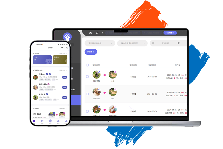 它助手主要有宠物管理、记录管理、孕期管理、 窝次管理、会员报表、小程序展示等功能,极力帮助宠舍减少管理成本提高店铺曝光度!